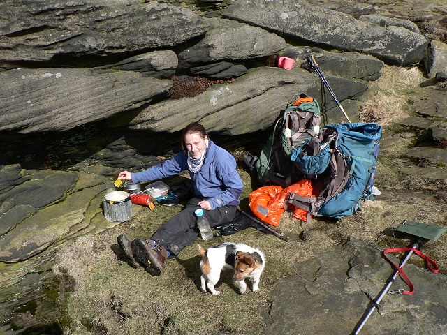 A shelterered spot for a brew-up and some noodles on Stanage.